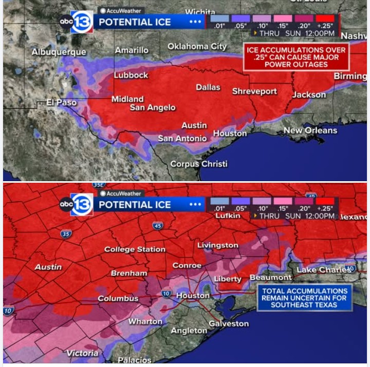 All it takes is a quarter inch of ice, and the outlook is for much of Texas to exceed that threshold.